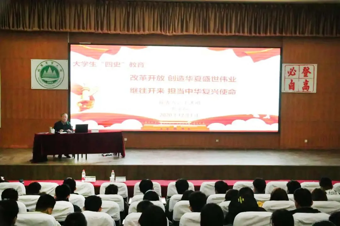 12月1日下午,农学院于南校区第一学术报告厅举办“四史”教育专题报告会。此次报告会特邀原农学院院长王洪刚教授担任主讲人,为大家作“四史”教育主题报告。农学院党委副书记李涛主持,学院辅导员、学生党员及2020级全体学生共同到会聆听。 王洪刚老师以亲身经历开篇,围绕“改革开放,创造华夏盛世伟业;继往开来,担当中华复兴使命”这一主题,分别从改革开放的背景、历程、成就、启示这四个方面生动地向大家介绍改革开放这段“破立旧新,勇于探索,创新奋进”的历史。 王洪刚的讲解内容充实、覆盖面广,并引用了大量数据向同学们展现了改革开放在民族复兴道路上的重要地位和意义。 报告最后,他结合习近平总书记的重要讲话和改革开放以来我国农业的发展近况,对农学院学子提出“既要读有字之书,也要读无字之书”的建议,希望农学院学子能学好知识,为农业生产持续发展做贡献。 通过本次“四史”学习活动,加深了学院师生对改革开放的了解,同时也激励学院师生勤学勤思,知史爱党,知史爱国,从历史中汲取开拓前行的智慧和力量。 站在新的历史起点上,我们应该牢记先辈们为实现中华民族伟大复兴所付出的努力,更要学好专业知识,肩负起强农兴农的使命,做到心中有信仰,脚下有力量。”20级农免二班刘鑫深有感触。 |