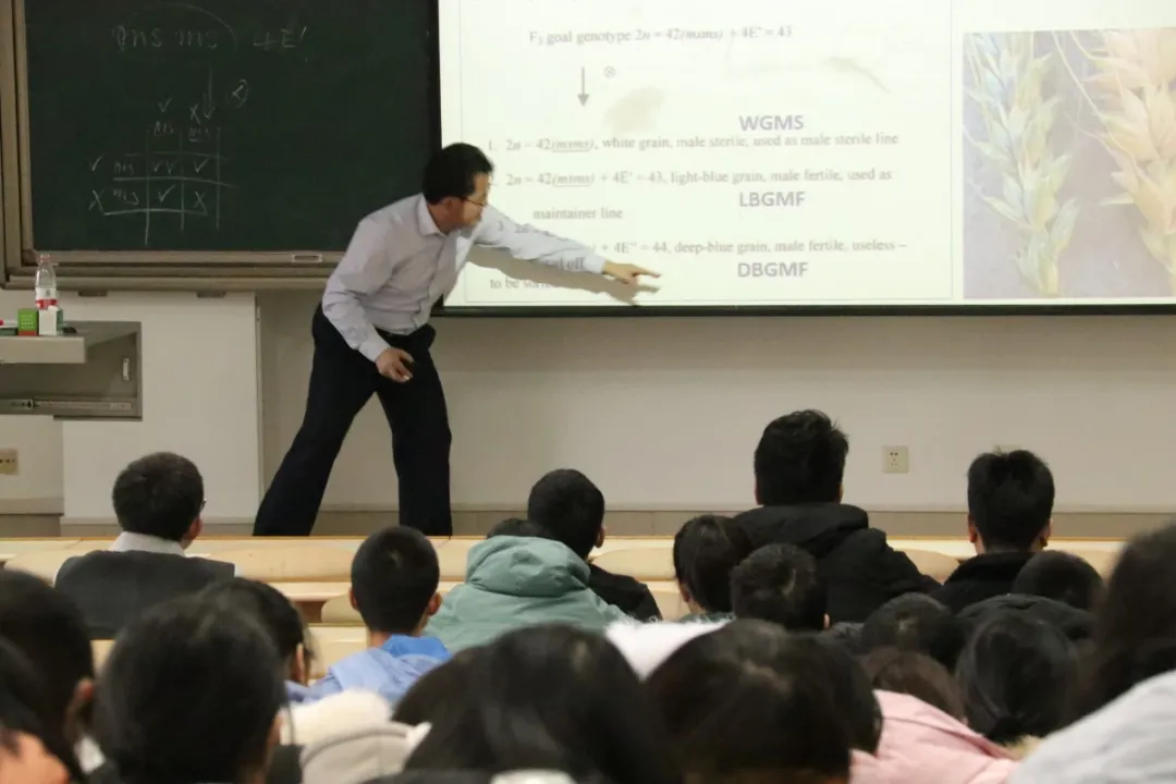 12月4日下午,农学院在综合楼N204举行第九期学实大讲堂,本期特邀付道林教授、吴佳洁教授,倪飞副教授为主讲嘉宾,为2019级同学带来精彩报告。 讲堂上,付道林老师以“杂交小麦发展趋势”为主题,结合生动有趣的事例,详细讲解了小麦的杂种优势。他指出,杂交小麦的种植方式不同于传统普通小麦,这是杂交小麦无法大量种植的一个重要原因。在报告过程中,付老师问答结合,充分调动同学们的学习积极性,课堂氛围轻松活跃。倪飞老师则以幽默风趣的语言,简单介绍了自己的科研经历,六年磨一剑,最终成功发表“太谷核不育小麦Ms2基因的图位克隆”。他总结到:“选择自己热爱的东西,不要半途而废,而应该按部就班、坚持到底。”最后,本期学实大讲堂在热烈的掌声中圆满结束。 2019级农学3班徐峻岩表示:“老师们的讲述,不仅让我更深入地了解到最新的农业研究前沿,而且激发出我对专业学习和参与科研创新的兴趣。” |