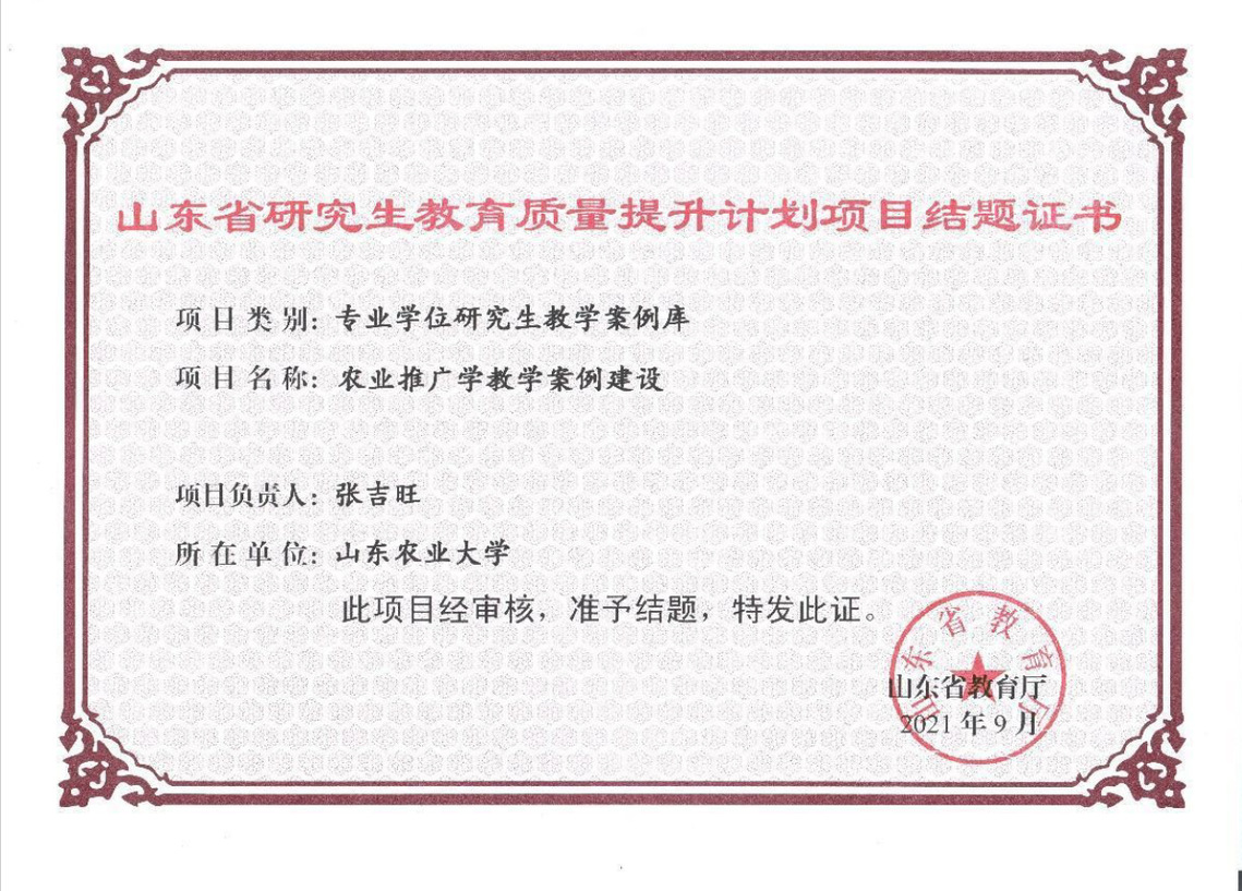 山东省专业学位研究生教学案例库-农业推广学教学案例建设