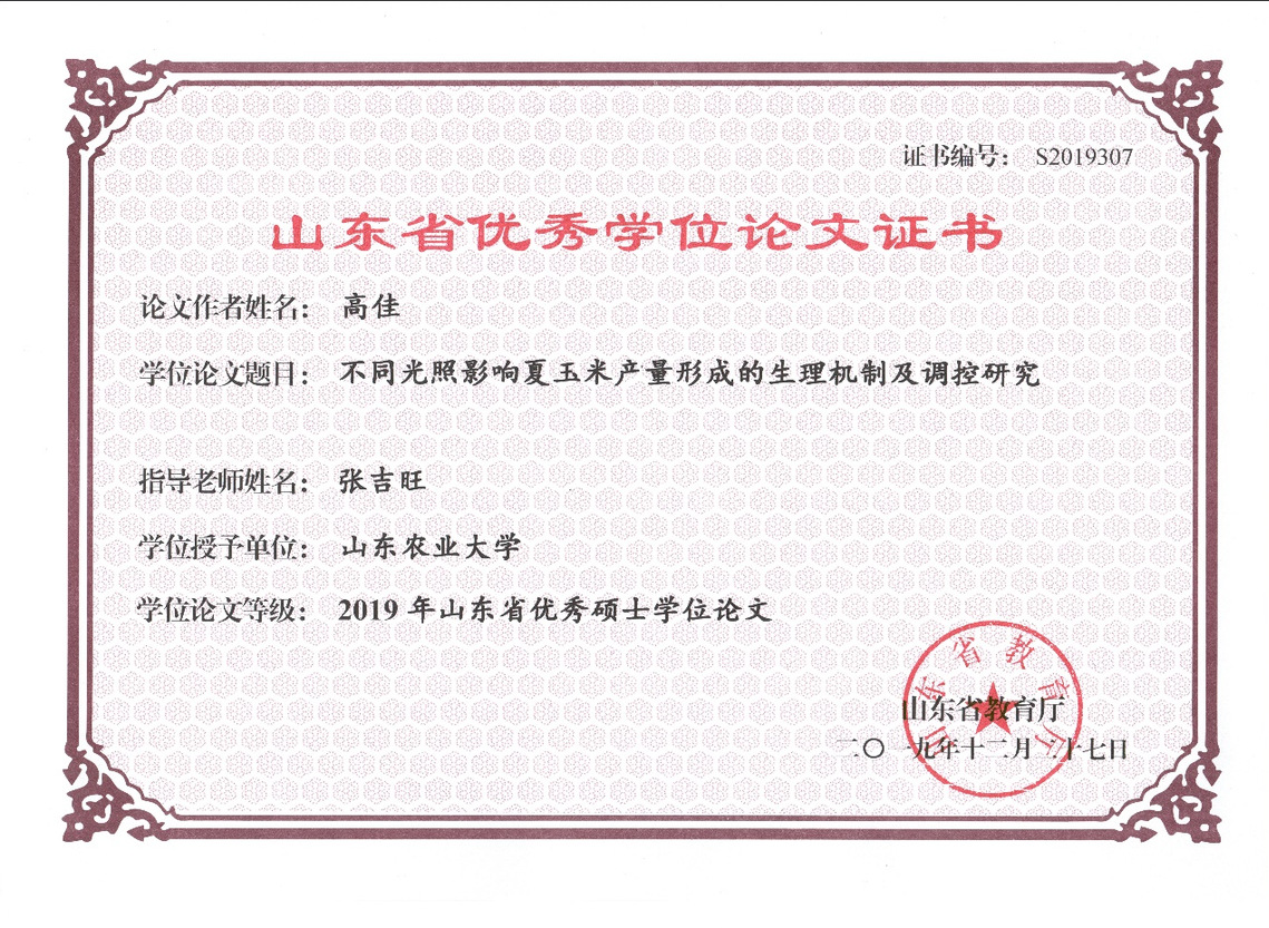 山东省优秀硕士学位论文-不同光照影响玉米产量形成别的生理机制及调控研究