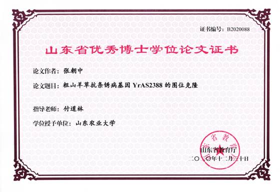 山东省优秀硕士学位论文-粗山羊草抗条锈病基因YrAS2388的图位克隆