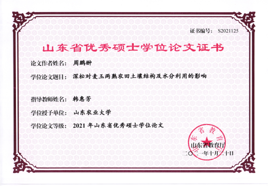山东省优秀硕士学位论文-深松对麦玉两熟农田土壤结构及水分利用的影响