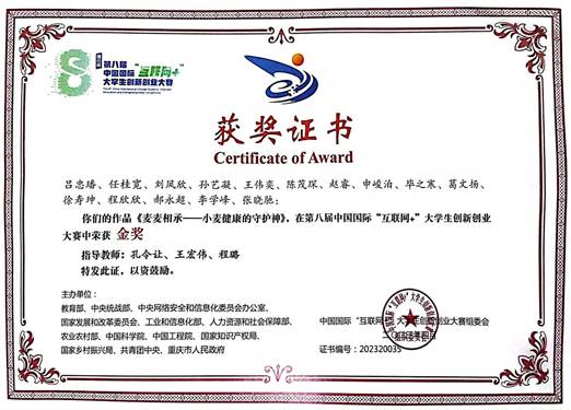麦麦相承—小麦健康的守护神 第八届中国国际“互联网+”大学生创新创业大赛 金奖