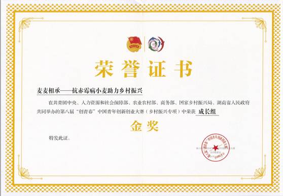 麦麦相传—抗赤霉病小麦助力乡村振兴 第八届“创青年”中国青年创新创业大赛(乡村振兴专项) 成长组 金奖