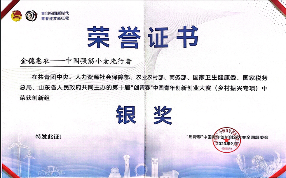 金穗惠农—中国强筋小麦先行者 第十届“创青春”中国青年创新创业大赛(乡村振兴专项) 银奖