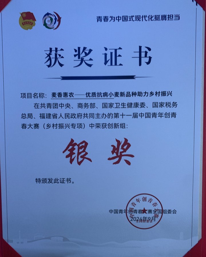 麦香惠农一一优质抗病小麦新品种助力乡村振兴 第十一届中国青年创青春大赛(乡村振兴专项) 银奖