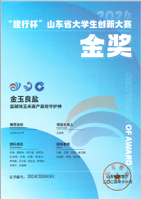 金玉良盐一一盐碱地玉米高产高效守护神 (建行杯)山东省大学生创新大赛(2024) 金奖