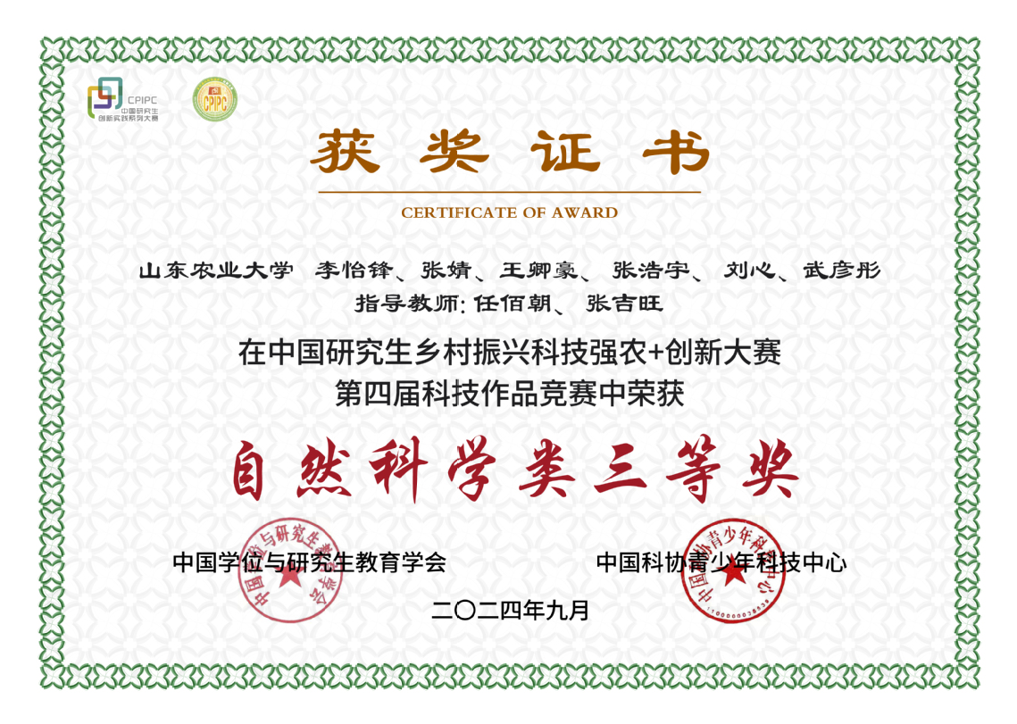 膜名剂妙——氮肥增效剂改良的新型包膜控释肥 中国研究生乡村振兴科技强农+创新大赛第四届科技作品竞赛自然科学类 三等奖