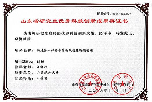 山东省研究生优秀科技创新成果奖 三等奖 构建第一张丹参高密度遗传连锁图谱