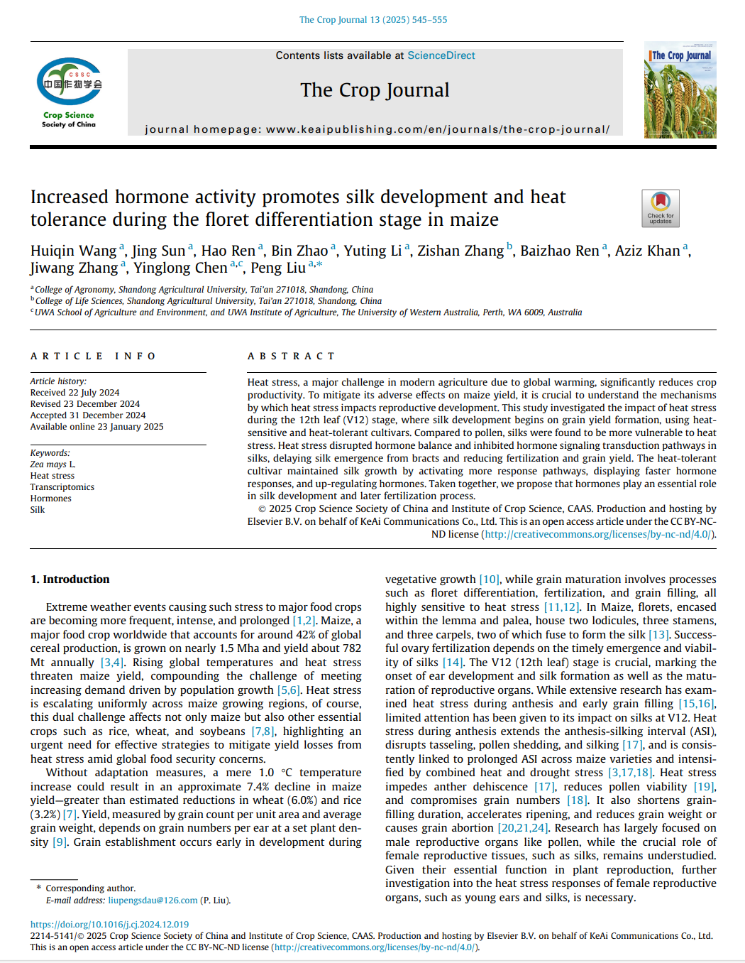 Increased hormone activity promotes silk development and heat tolerance during the floret differentiation stage in maize. The Crop Journal
