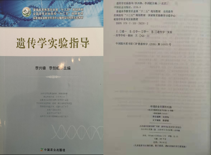 李兴锋,遗传学实验指导,主编,中国农业出版社,2018