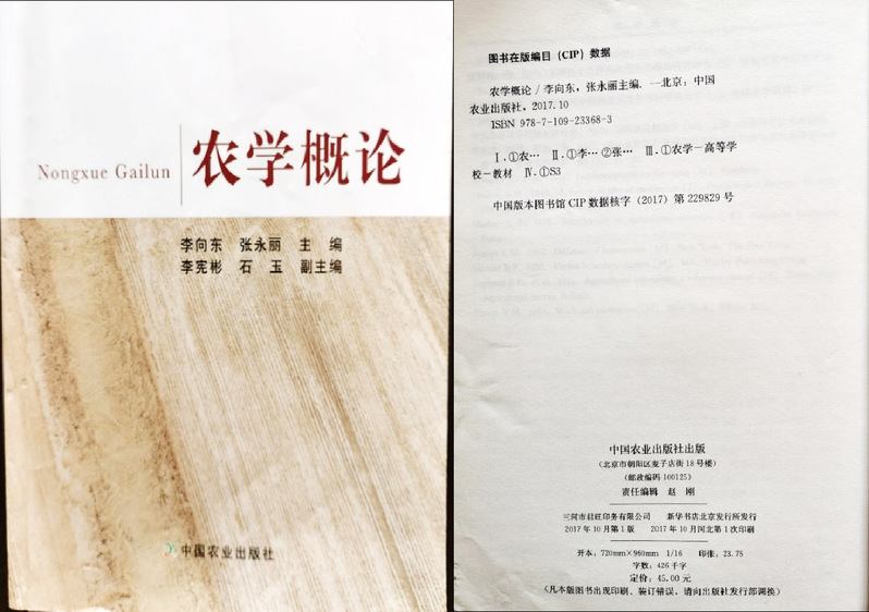 李向东 张永丽,农学概论,主编,中国农业出版社,2017