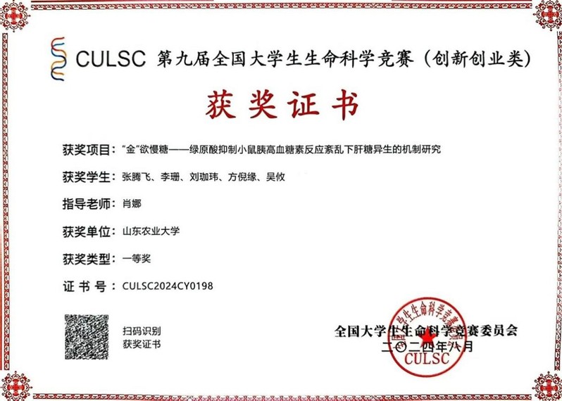 全国大学生生命科学竞赛(2024)一等奖 张腾飞