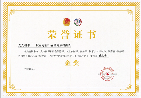 第八届“创青年”中国青年创新创业大赛(乡村振兴专项)金奖 吕忠璠